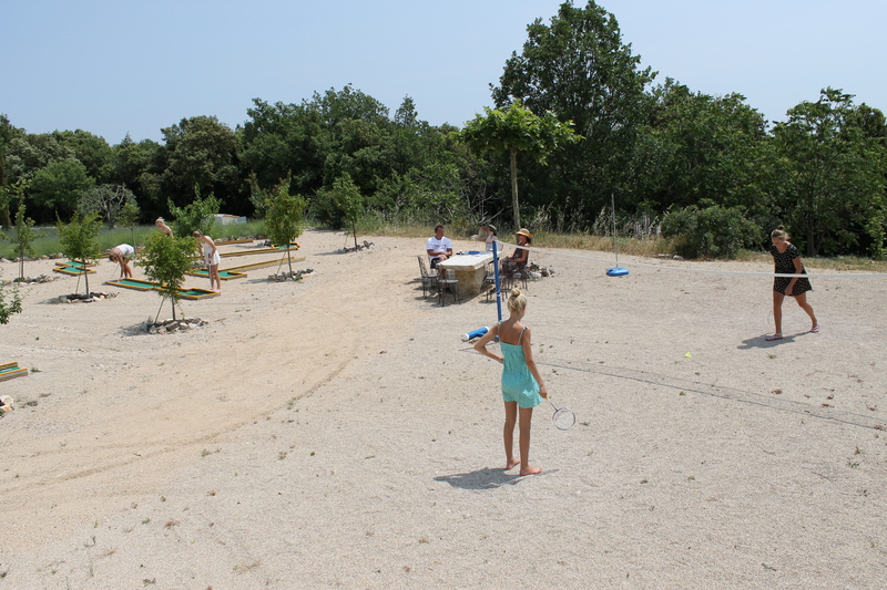 Guests can enjoy a game of badminton or test their skills at mini-golf and boules.